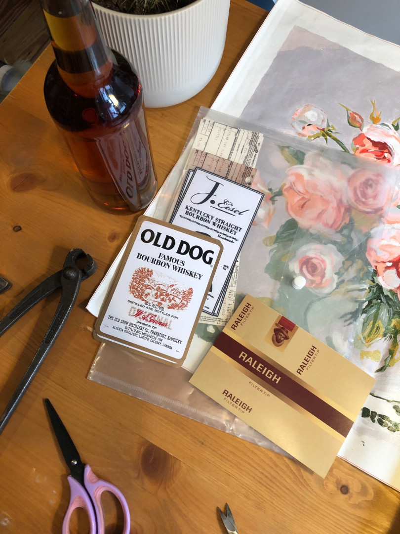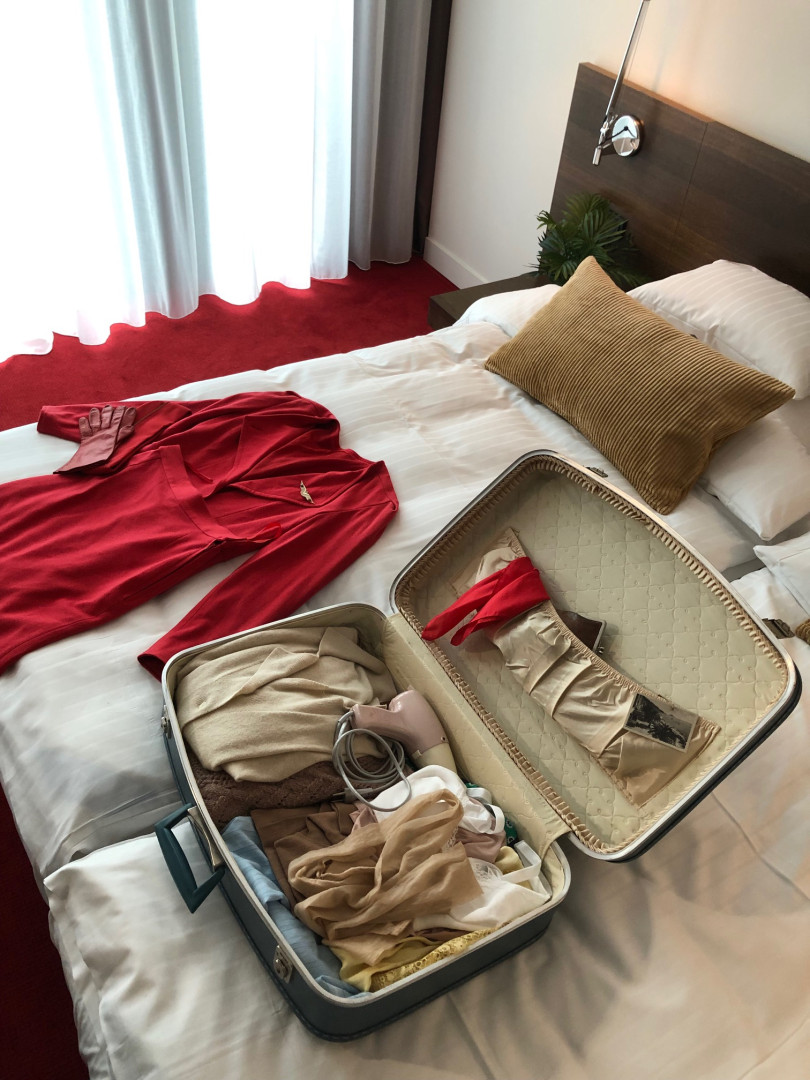 In collaboration with illustrator Arne Kulf aka AKU!, I recreated some props from the era for the shoot, like cigarrette boxes and plane tickets.
